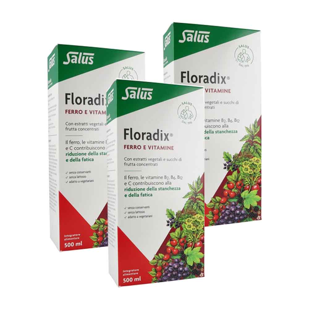 Floradix es el complemento natural para aumentar la energía El Pack Floradix 500ml es un complemento alimenticio que contiene vitaminas, hierro, ácido fólico y también contiene extractos de hierbas y concentrados de zumos de frutas. Floradix contiene hierro orgánico (II) de gluconato ferroso, vitaminas B2, B6, B12 y C, que contribuyen a la reducción del cansancio y la fatiga y al metabolismo normal de la producción de energía. El hierro contribuye a la formación normal de glóbulos rojos (respaldados por las vitaminas B6 y B12) y a la formación de hemoglobina. Además, el folato (ácido fólico) contribuye al crecimiento normal del tejido materno durante el embarazo. La vitamina C aumenta la absorción de hierro. Floradix es un suplemento vitamínico natural, compuesto por hierro, vitaminas, especies vegetales y zumos de frutas, que aporta los nutrientes y el hierro que tu organismo necesita cuando te sientes cansado y te falta energía. Indicado para vegetarianos, no contiene alcohol, lactosa y conservantes, sin embargo puede contener gluten y fructosa, no está indicado para veganos. PRESENTACIÓN 500ml x 3