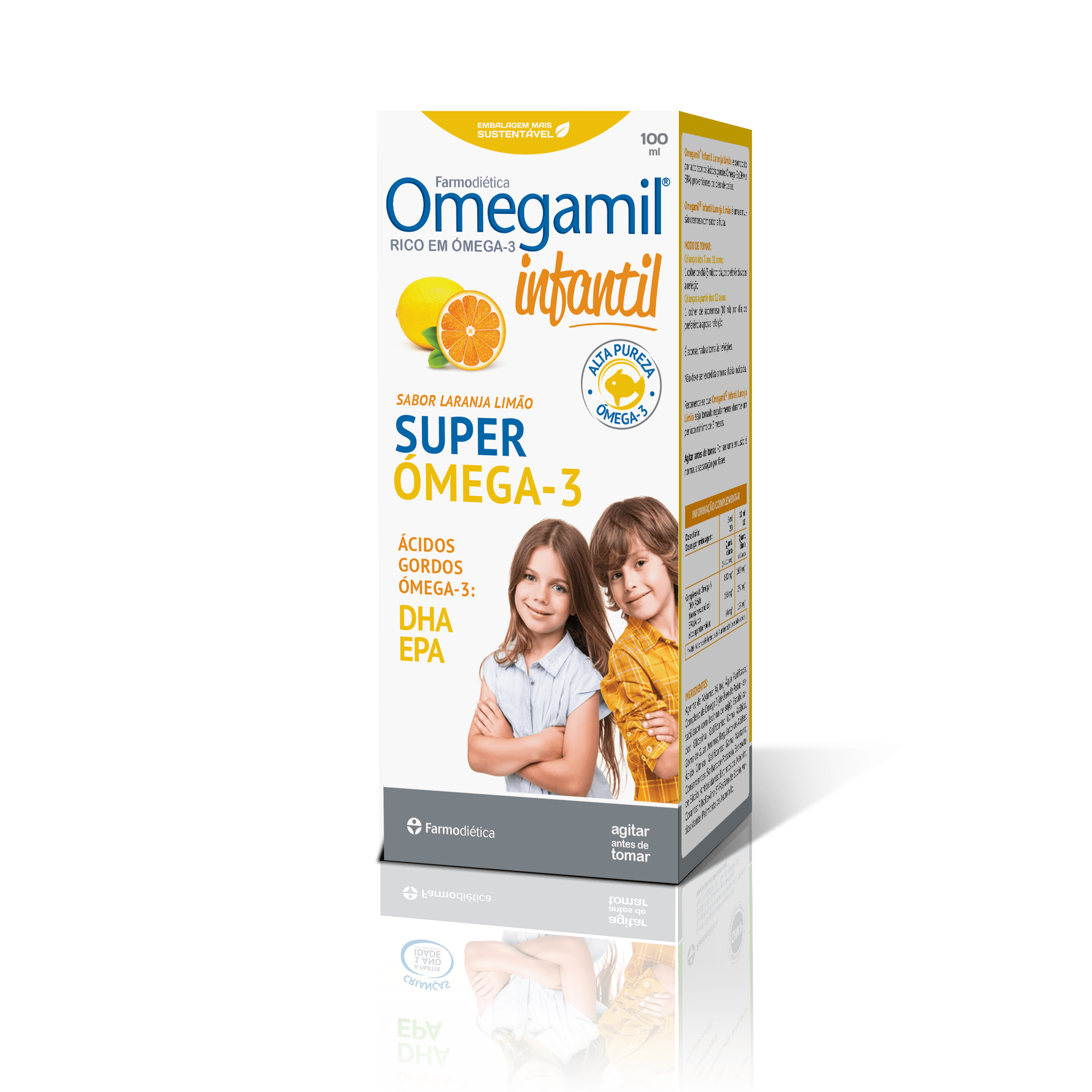 Omegamil® Children’s Lemon Orange está compuesto por un alto contenido en ácidos grasos omega-3 (DHA y EPA) procedentes del aceite de pescado. Elegir un suplemento seguro con un alto contenido en ácidos grasos omega-3 es la solución ideal para complementar la dieta de los niños y promover un desarrollo saludable.