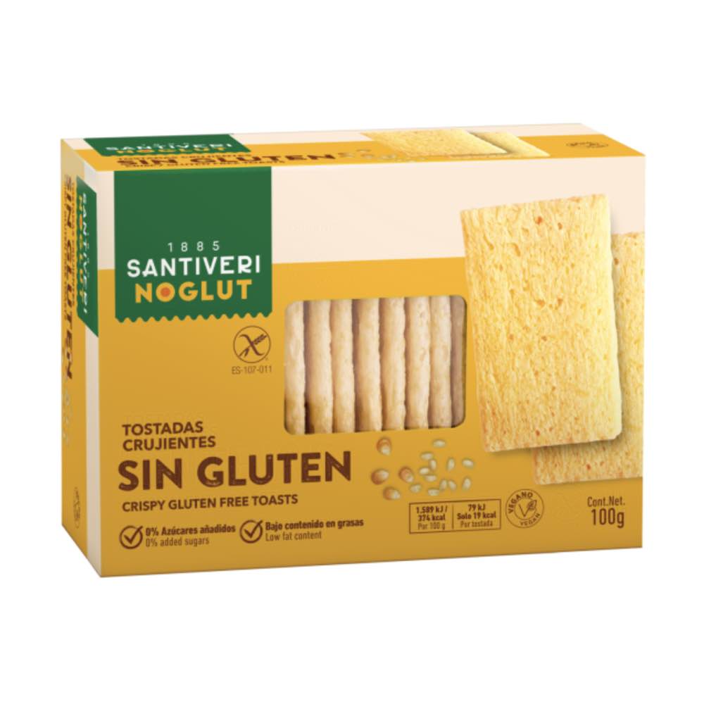 Tosta Gluten Free Tostas elaboradas con ingredientes tan simples como la harina de arroz y el maíz. Sin gluten, ligero, crujiente y fácil de digerir. Se pueden utilizar para preparar canapés o para acompañar comidas en sustitución de pan. PRESENTACIÓN 100 g.