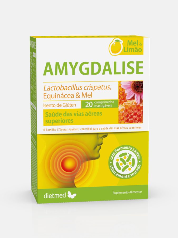 Amygdalise Mel e Limão – 20 comprimidos mastigáveis – Dietmed