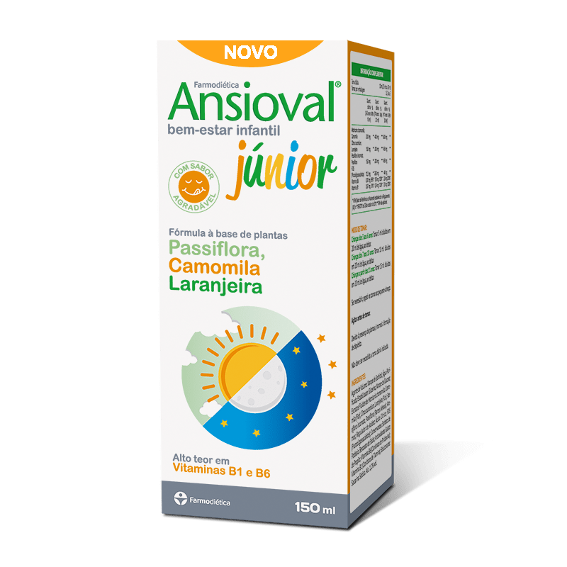 Ansioval Júnior é um suplemento alimentar com plantas com reconhecida ação tranquilizante e relaxante, associa as vitaminas B1 e B6 a camomila, laranjeira e passiflora.