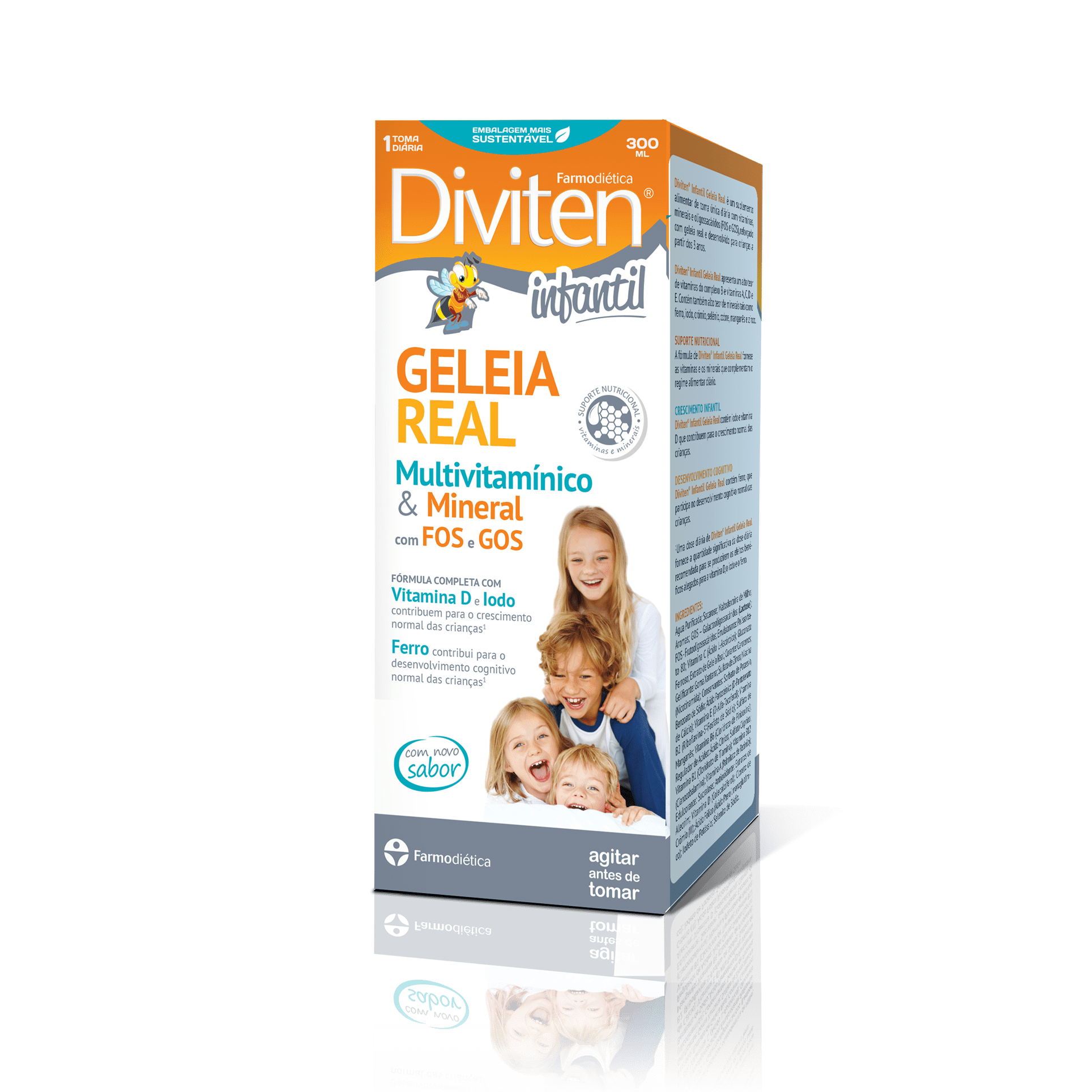Diviten® Infantil Geleia Real contém vitaminas, minerais, prebióticos e ainda geleia real. É um bom reforço multivitaminico, de toma única diária, que contribui para um crescimento saudável e para o reforço do sistema imunitário.