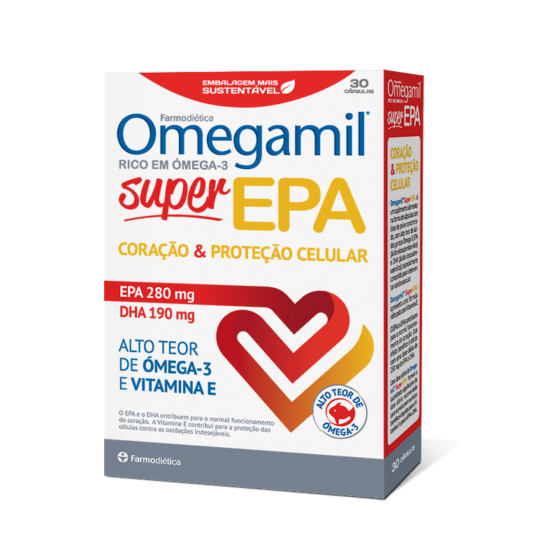 Omegamil super EPA é um suplemento alimentar em cápsulas com óleo de peixe concentrado e um alto teor de ácidos gordos ómega-3, EPA (ácido eicosapentaenóico) e DHA (ácido docosahexaenóico), apresentando ainda uma fórmula reforçada com vitamina E.